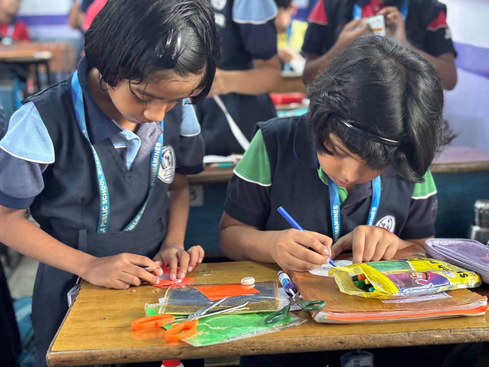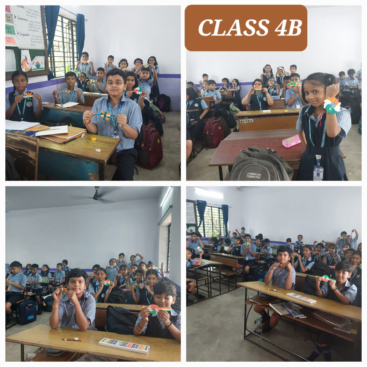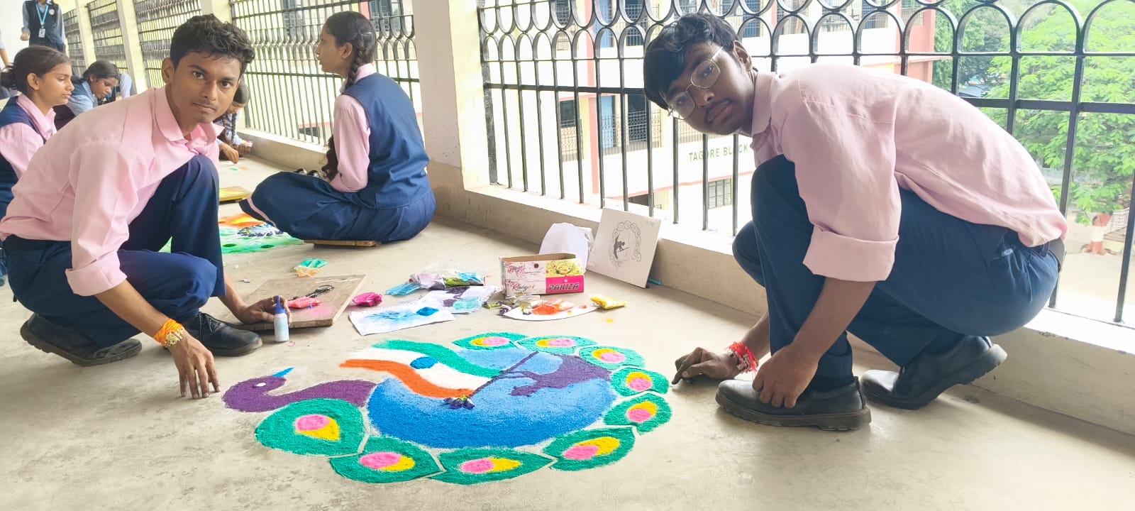 Students enthusiastically participated in bulletin board presentations, Tiranga making/drawing for Nursery to UKG, Flag Making Competition for Std. I to V, Tiranga Rakhi Making Competition for Std. III to VIII, Letter Writing Competition in English and Hindi for Std. VI to XII, and Tiranga Rangoli Making Competition for Std. IX to XII.