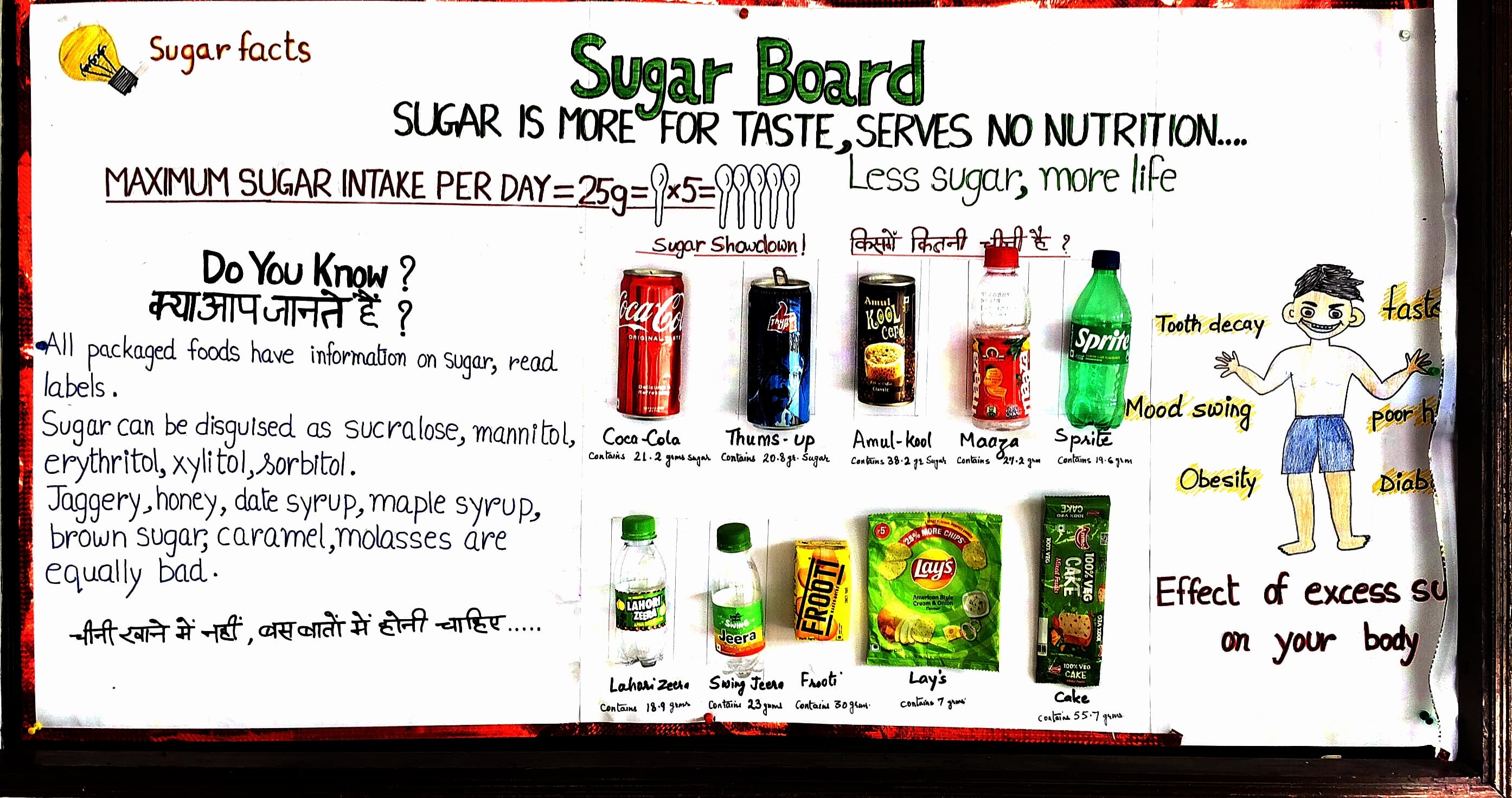 Date - 22.07.25 Event- CBSE Initiative: Establishment of ‘Sugar Board’ In a progressive move towards promoting student health and well-being, the Central Board of Secondary Education (CBSE) has introduced the establishment of a ‘Sugar Board’ in schools. This initiative aims to monitor and reduce sugar intake among children, fostering healthier dietary habits from an early age. As part of this initiative, an awareness seminar was also conducted by Ms. Harpritam Kaur, an expert in nutrition and child health. During the seminar, students were educated on the harmful effects of excessive sugar consumption, including obesity, dental problems, and the risk of lifestyle diseases. Ms. Kaur emphasized the importance of reading food labels, choosing natural sugars over processed ones, and developing mindful eating habits. This initiative marks a significant step toward creating a healthier school environment and instilling lifelong nutritional awareness in students.