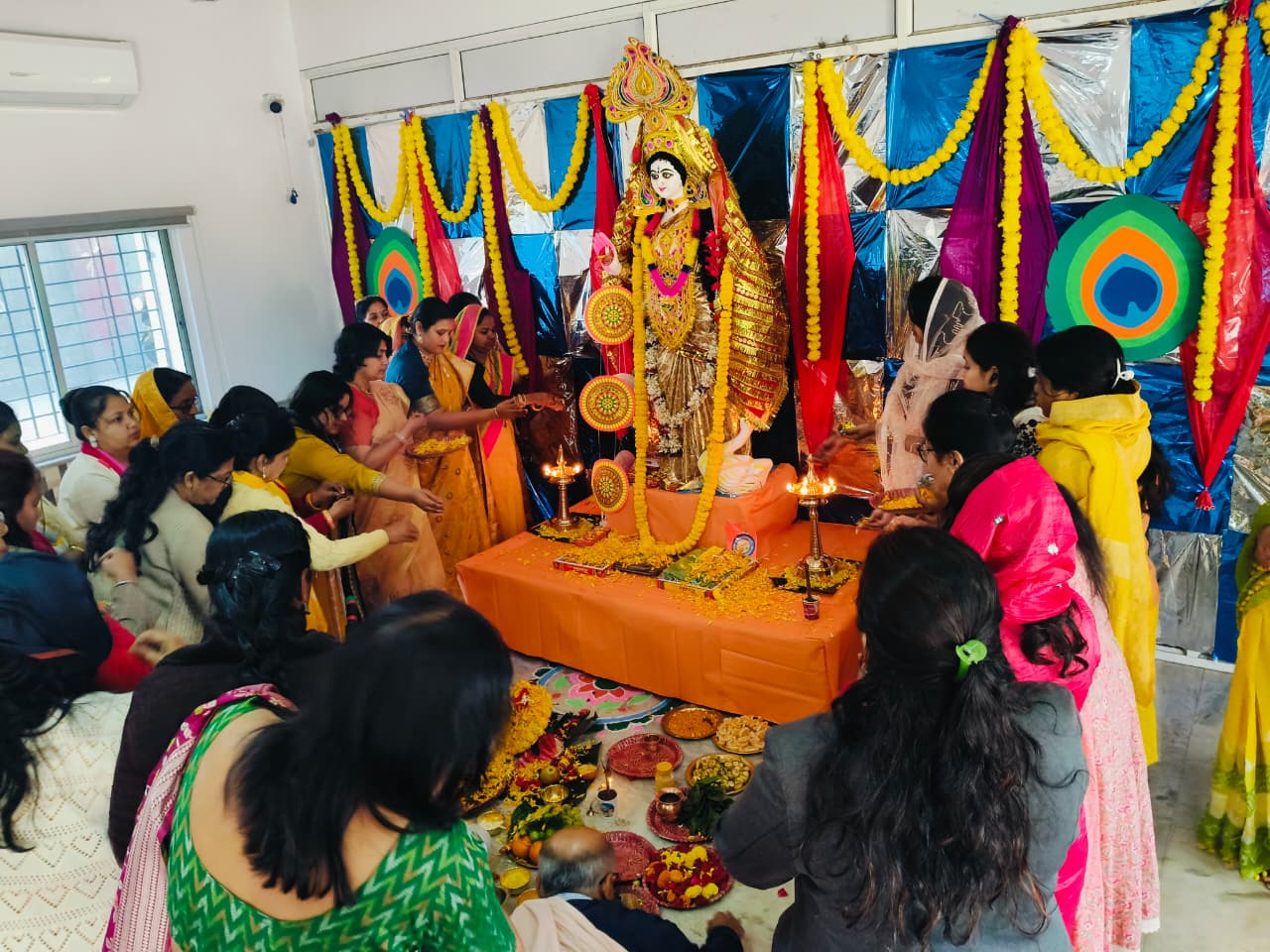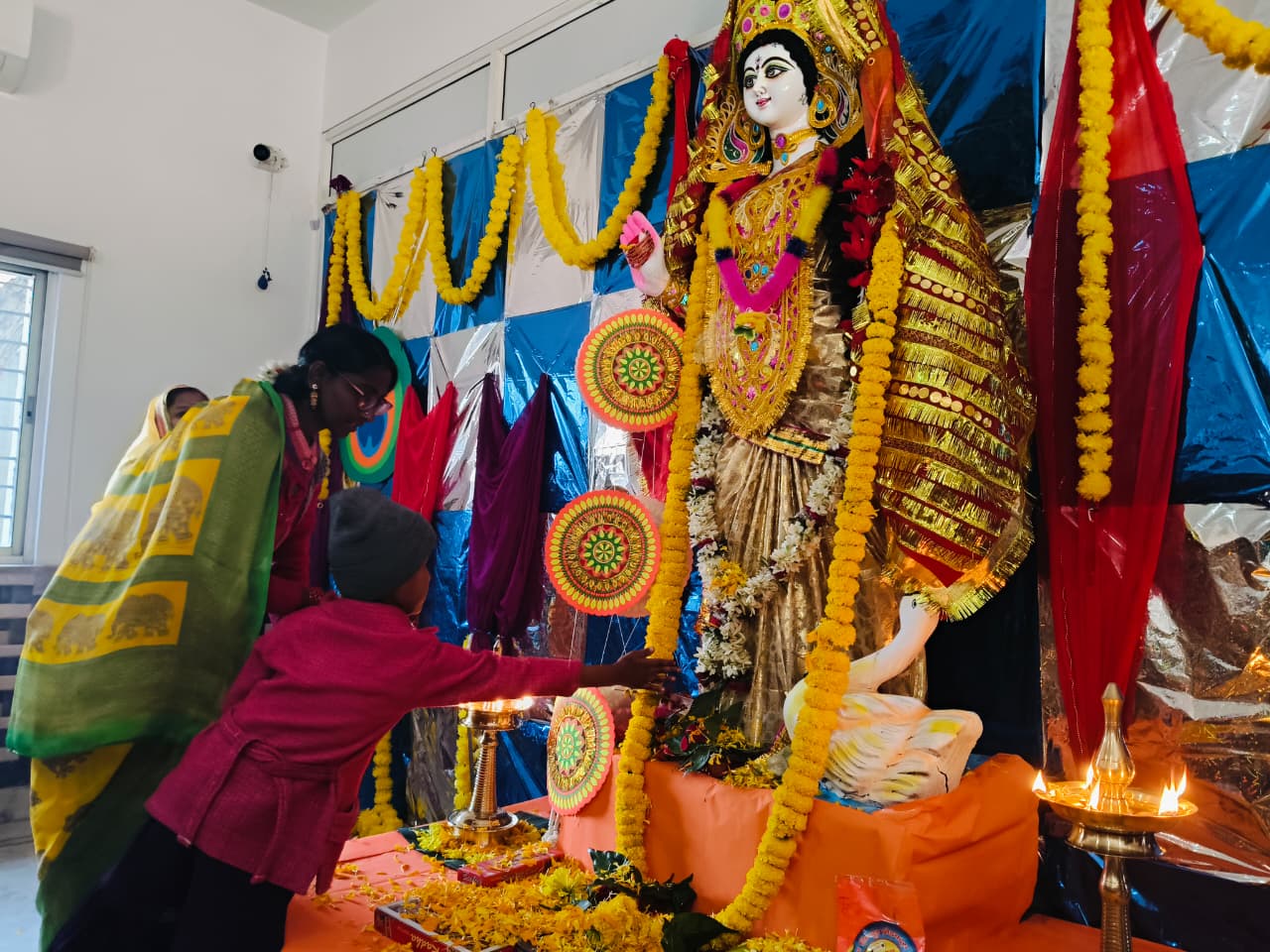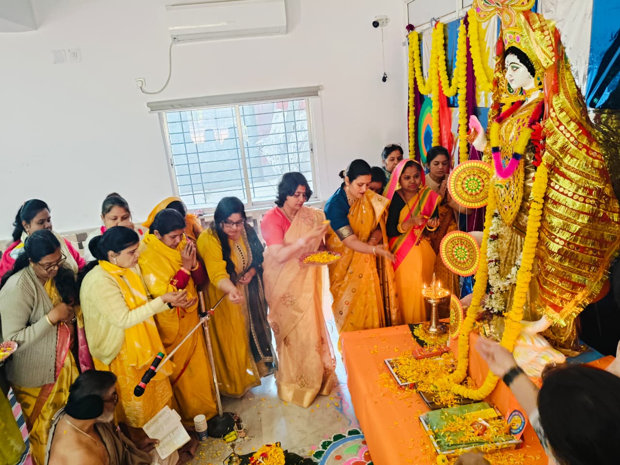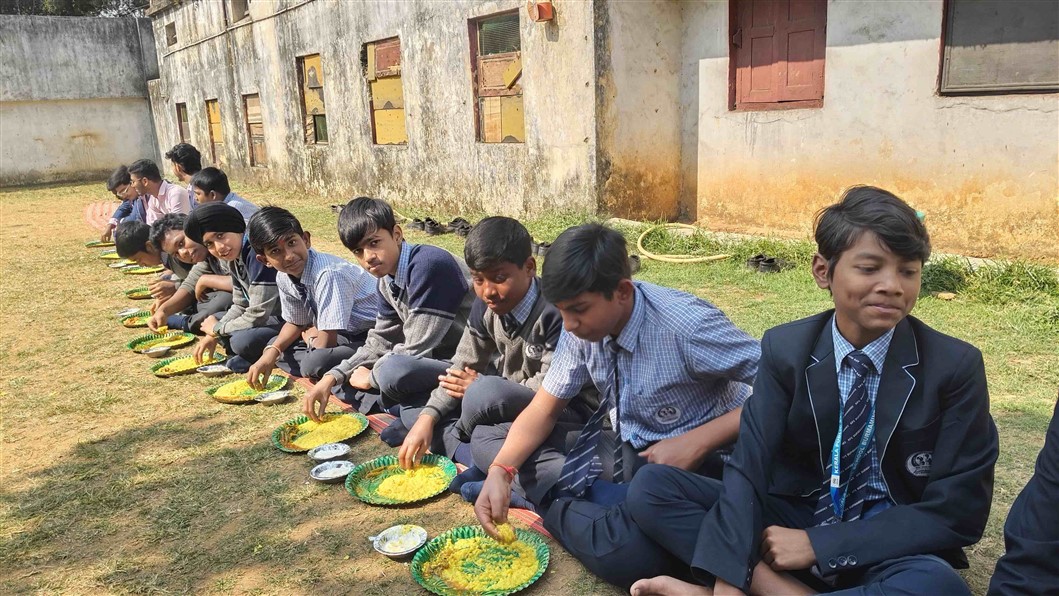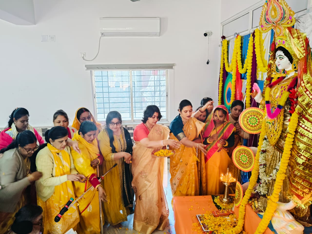 Students from Classes VI to XII also participated in the celebration. Prasad and bhog were distributed among all. The worship of Goddess Saraswati was concluded with devotional bhajans and kirtans, creating a serene and spiritually enriching atmosphere.