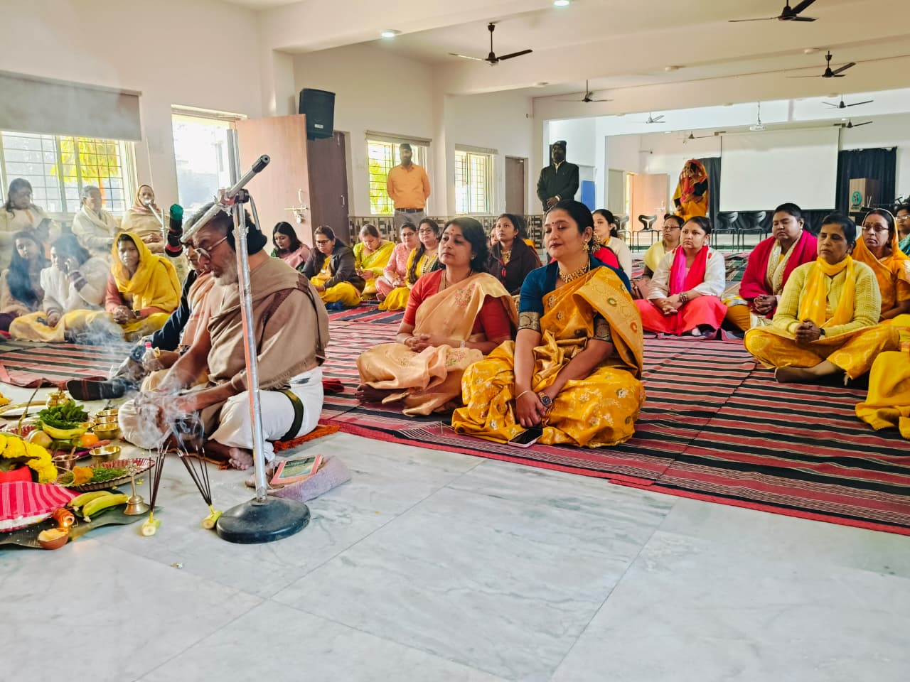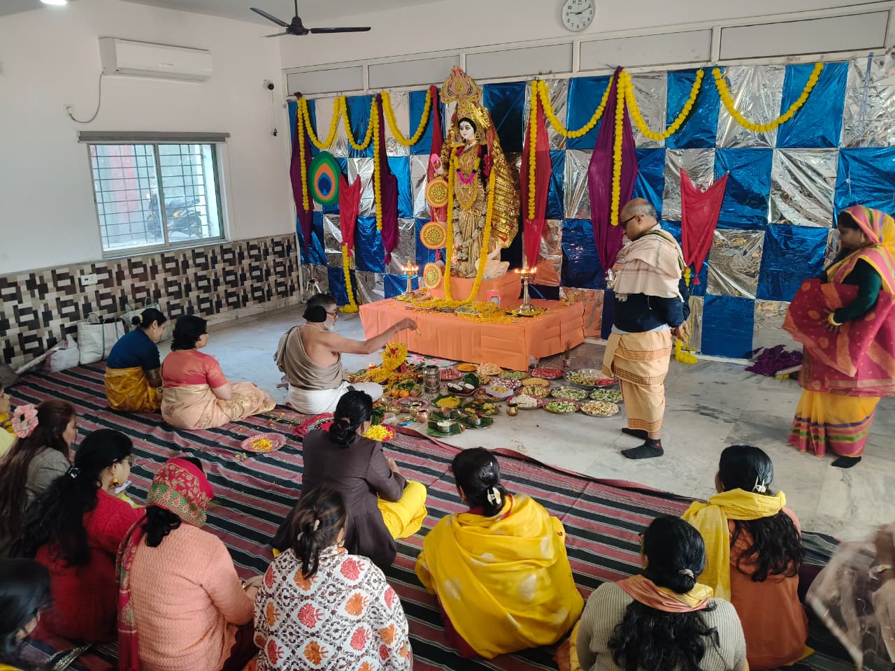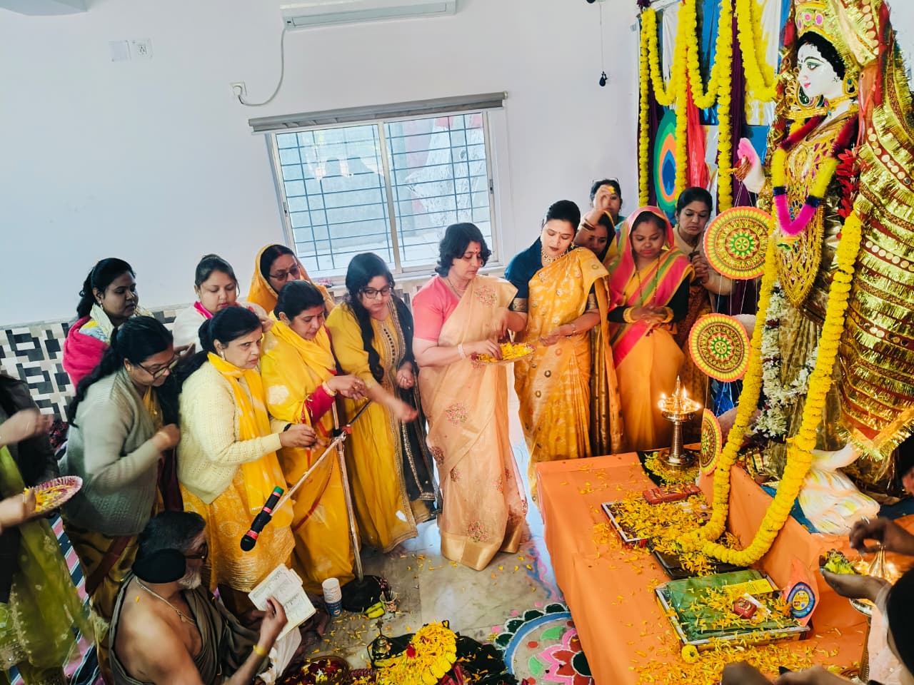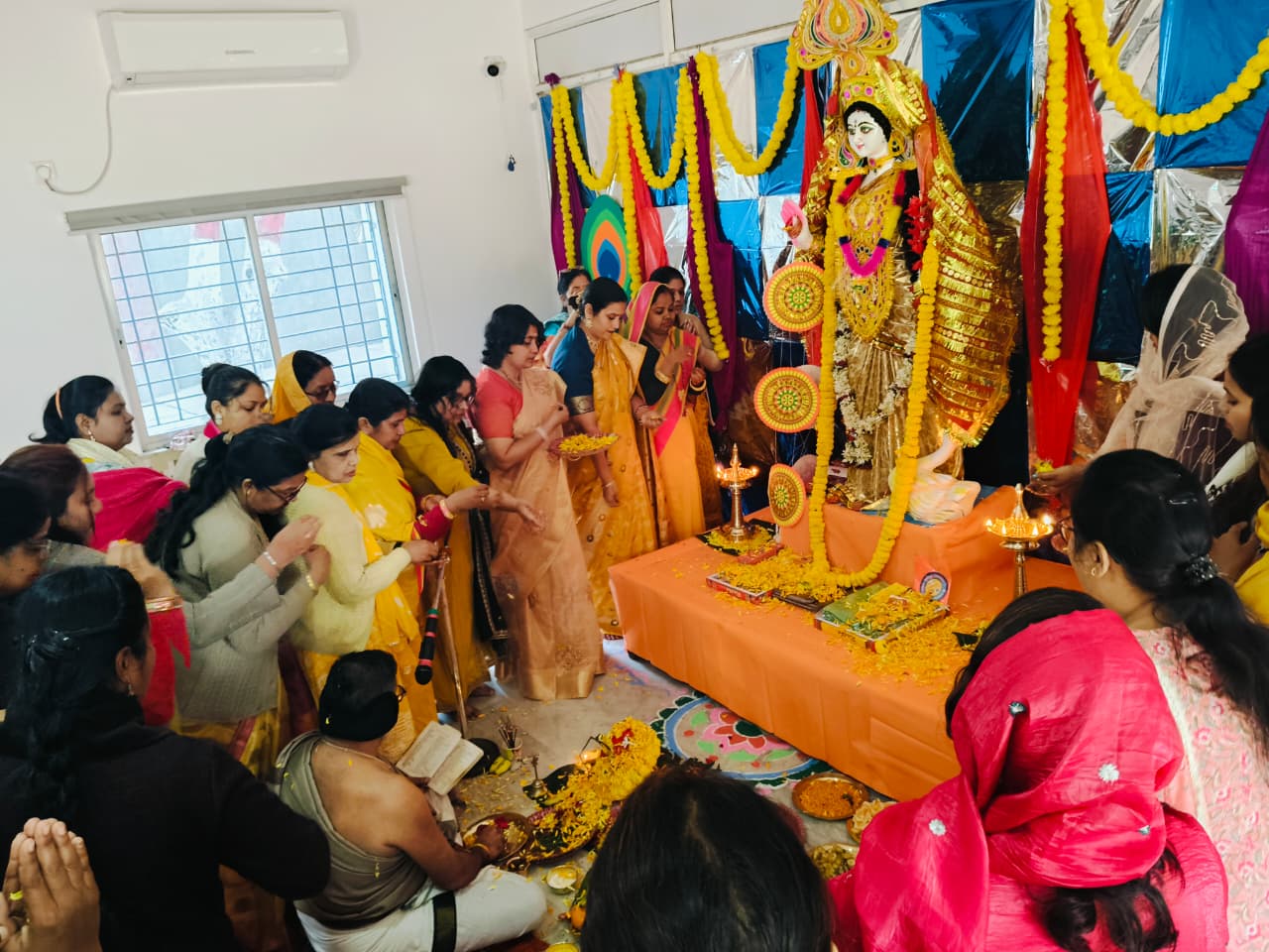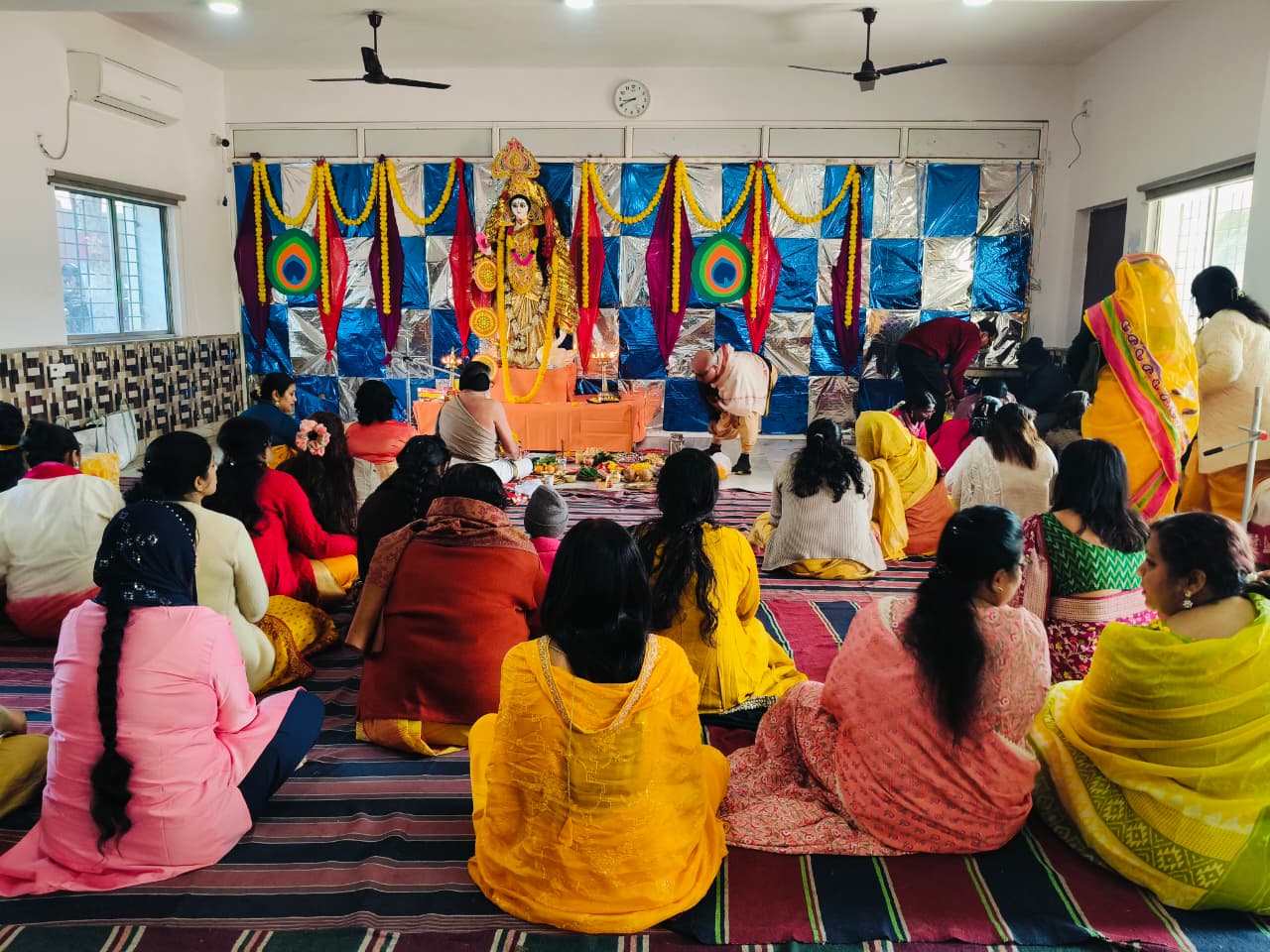 Students from Classes VI to XII also participated in the celebration. Prasad and bhog were distributed among all. The worship of Goddess Saraswati was concluded with devotional bhajans and kirtans, creating a serene and spiritually enriching atmosphere.