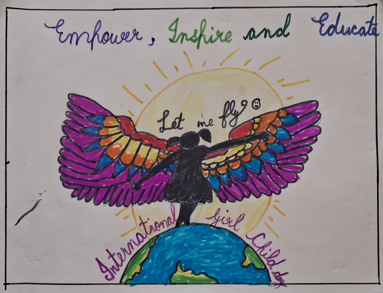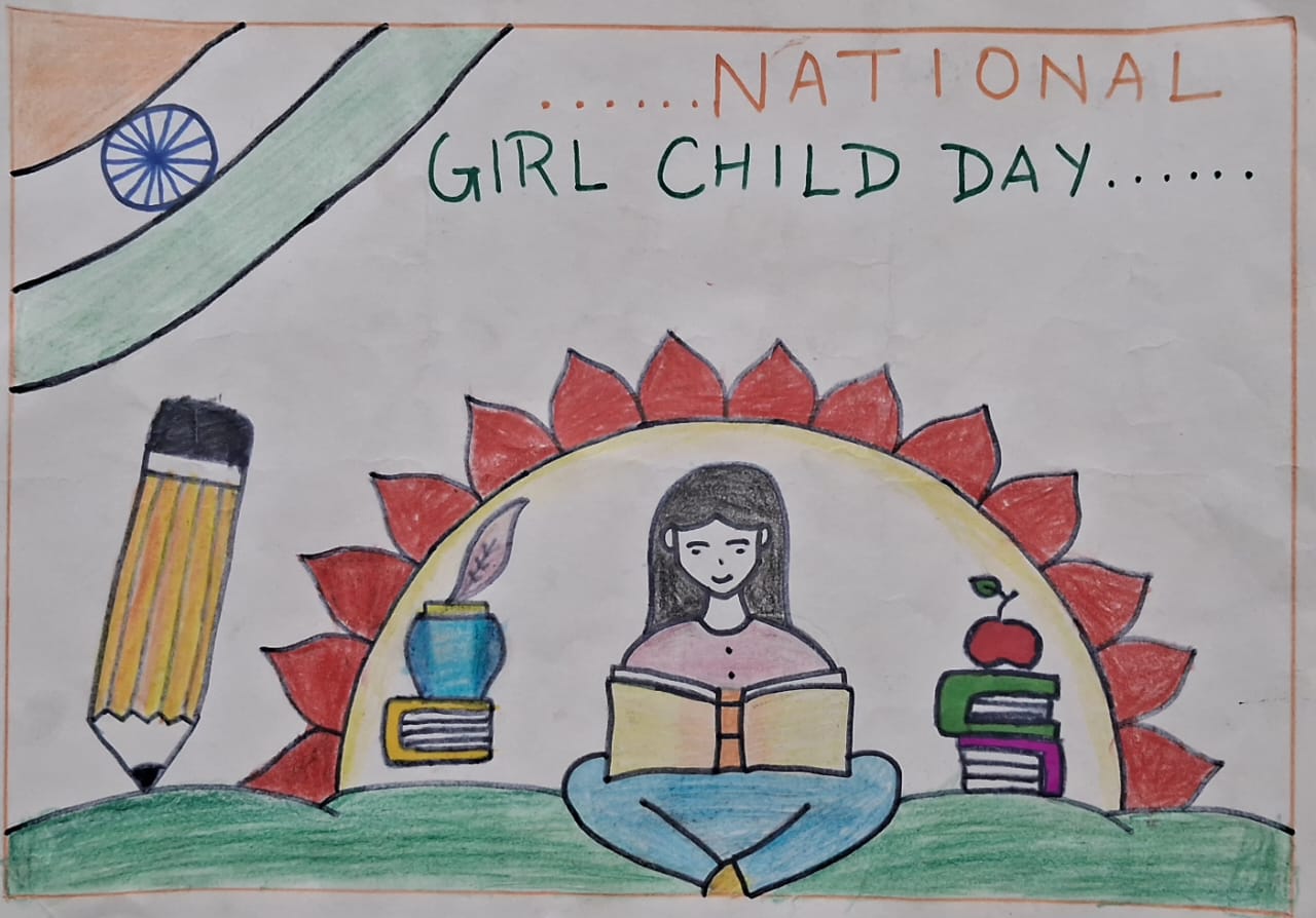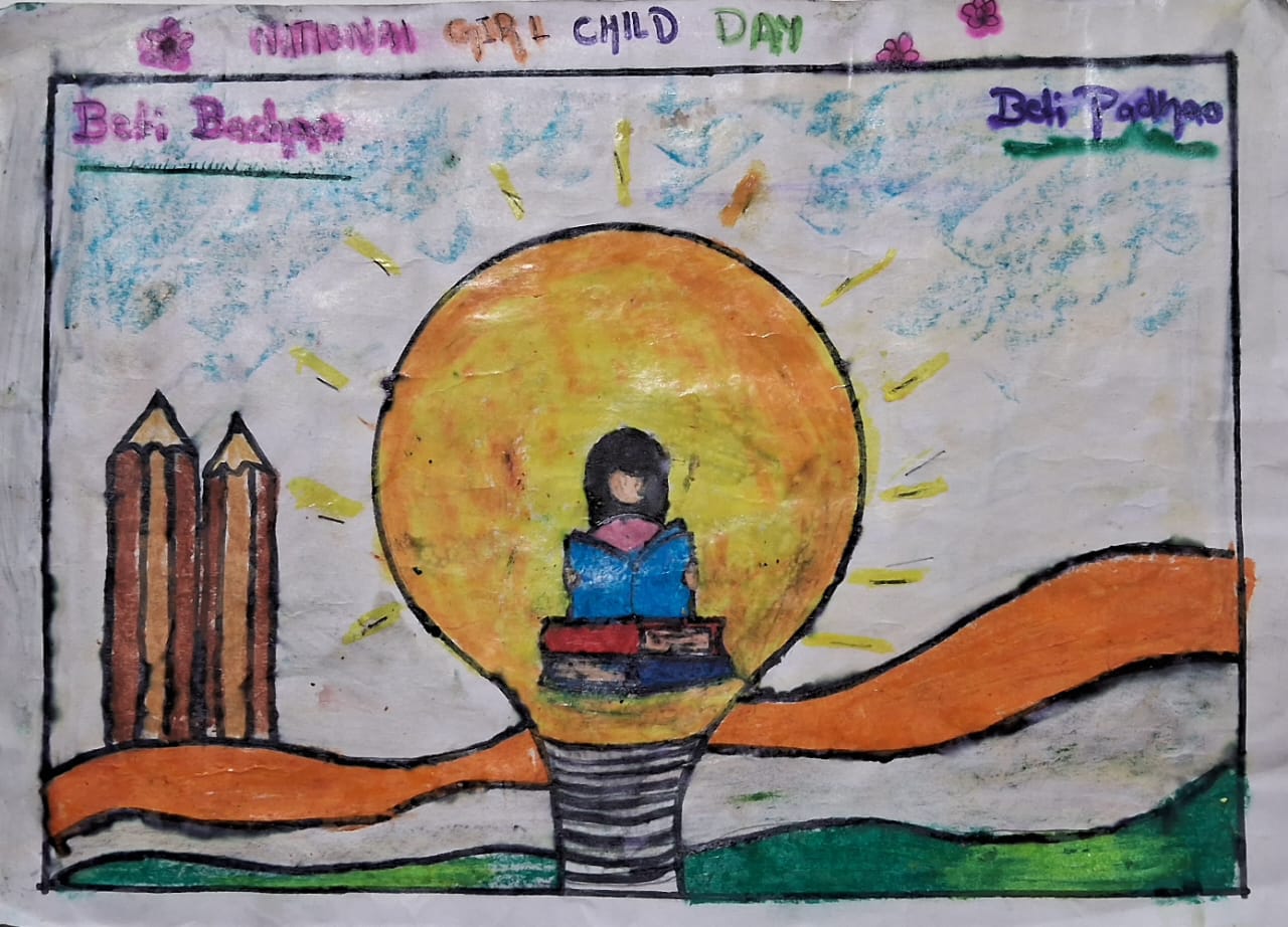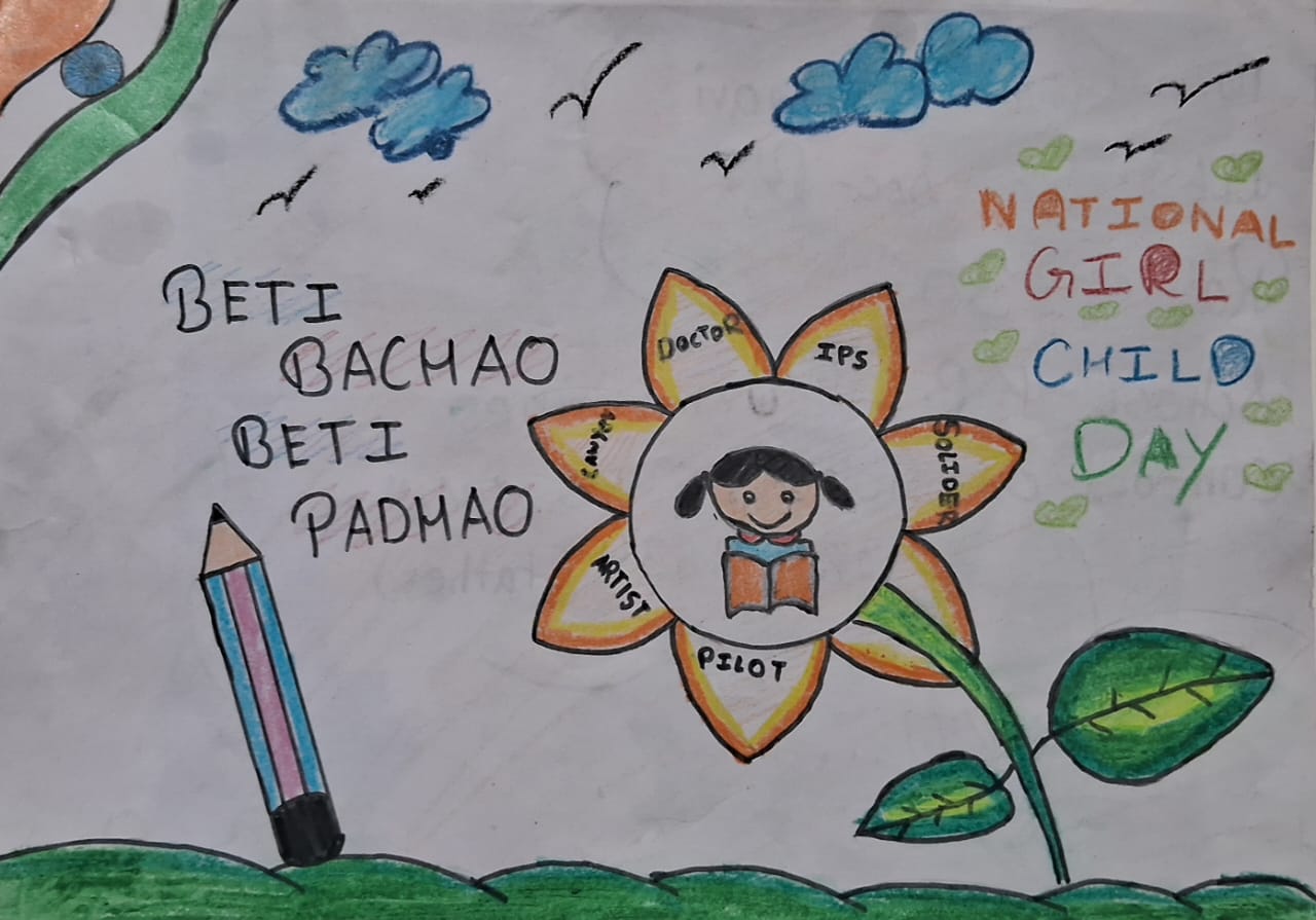 As part of the celebration, a poster making activity was organised for students of Std. IV to VIII, guided by Sir Aditya Kumar, where participants creatively expressed their thoughts on themes related to girl child empowerment, education and equality.